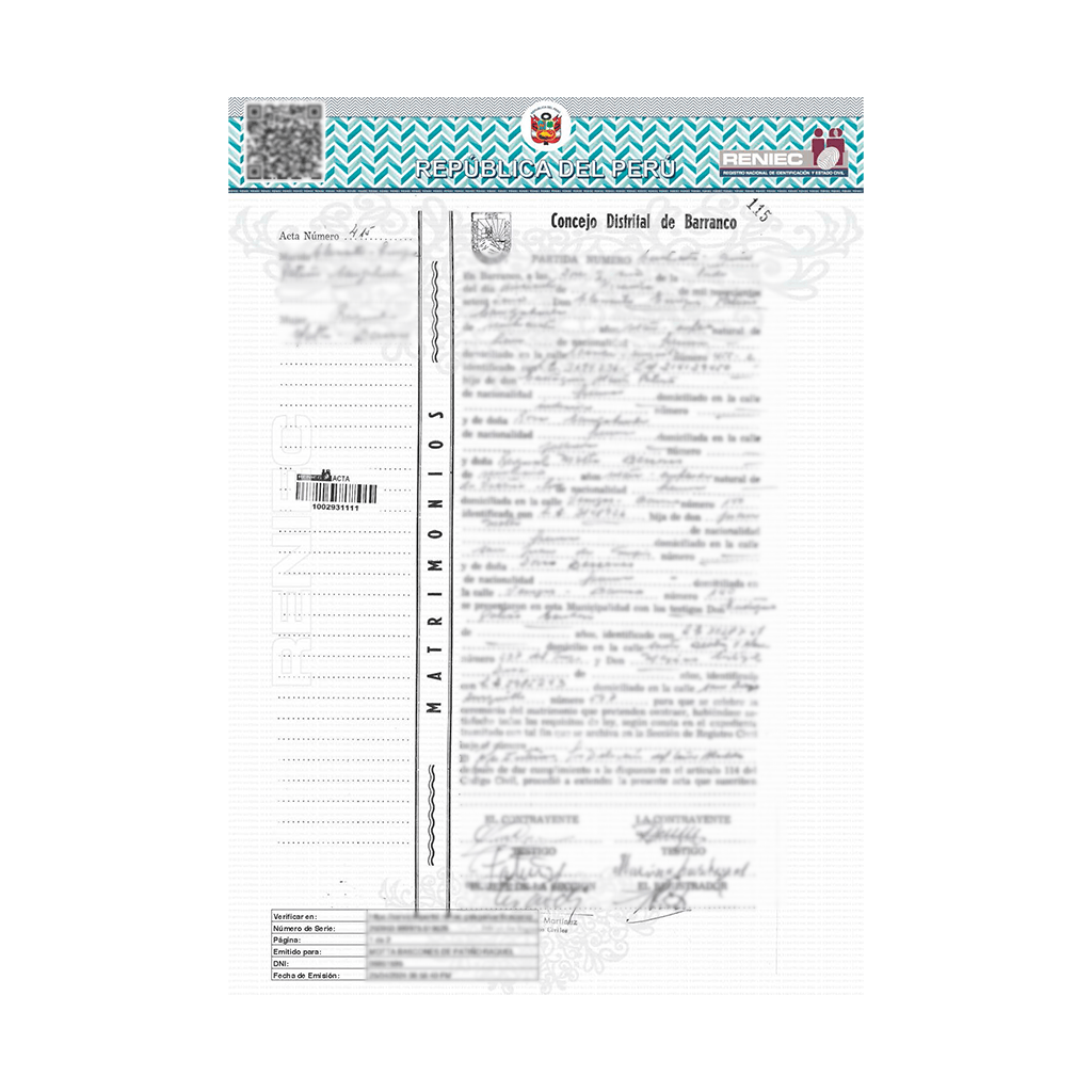 El acta de matrimonio digital es la forma más rápida y segura de obtener una versión oficial de tu documento matrimonial. Emitido directamente por la autoridad competente del Registro Civil, este certificado electrónico valida legalmente tu unión y contiene la misma información que un documento impreso, incluyendo el QR, los nombres de los contrayentes, la fecha y el lugar de la boda.